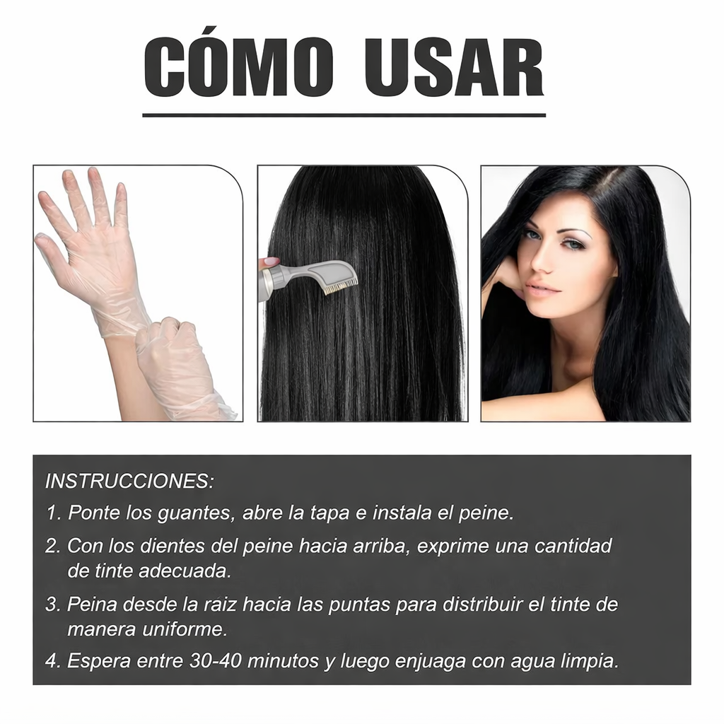 El peine aplicador distribuye el tinte de manera pareja para un acabado perfecto.