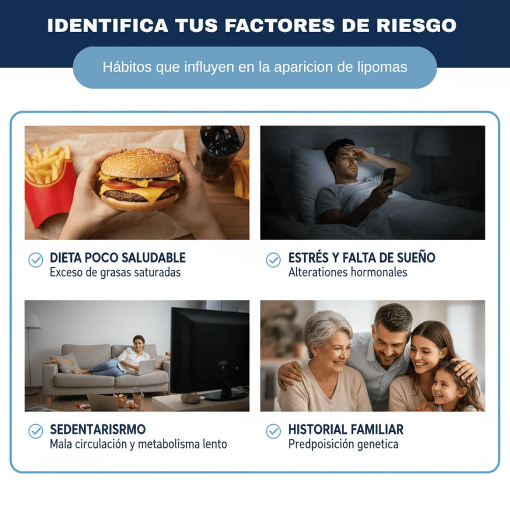 La solución natural para eliminar lipomas sin dolor ni cirugía. Con su fórmula avanzada que combina azafrán, astrágalo y geranio, ayuda a reducir el tamaño de los lipomas de forma gradual, mientras mejora la apariencia de la piel y previene la formación de nuevos bultos.
